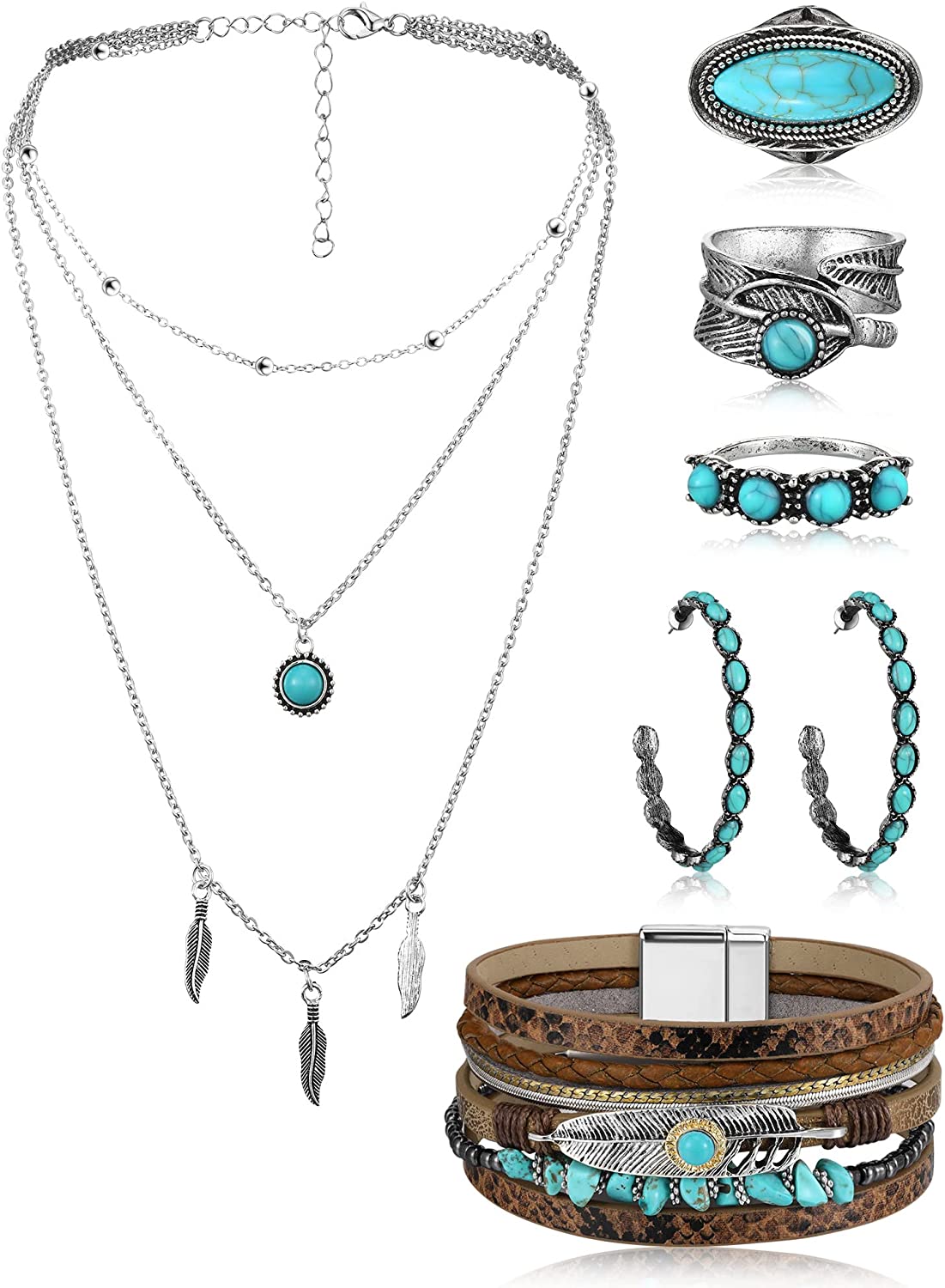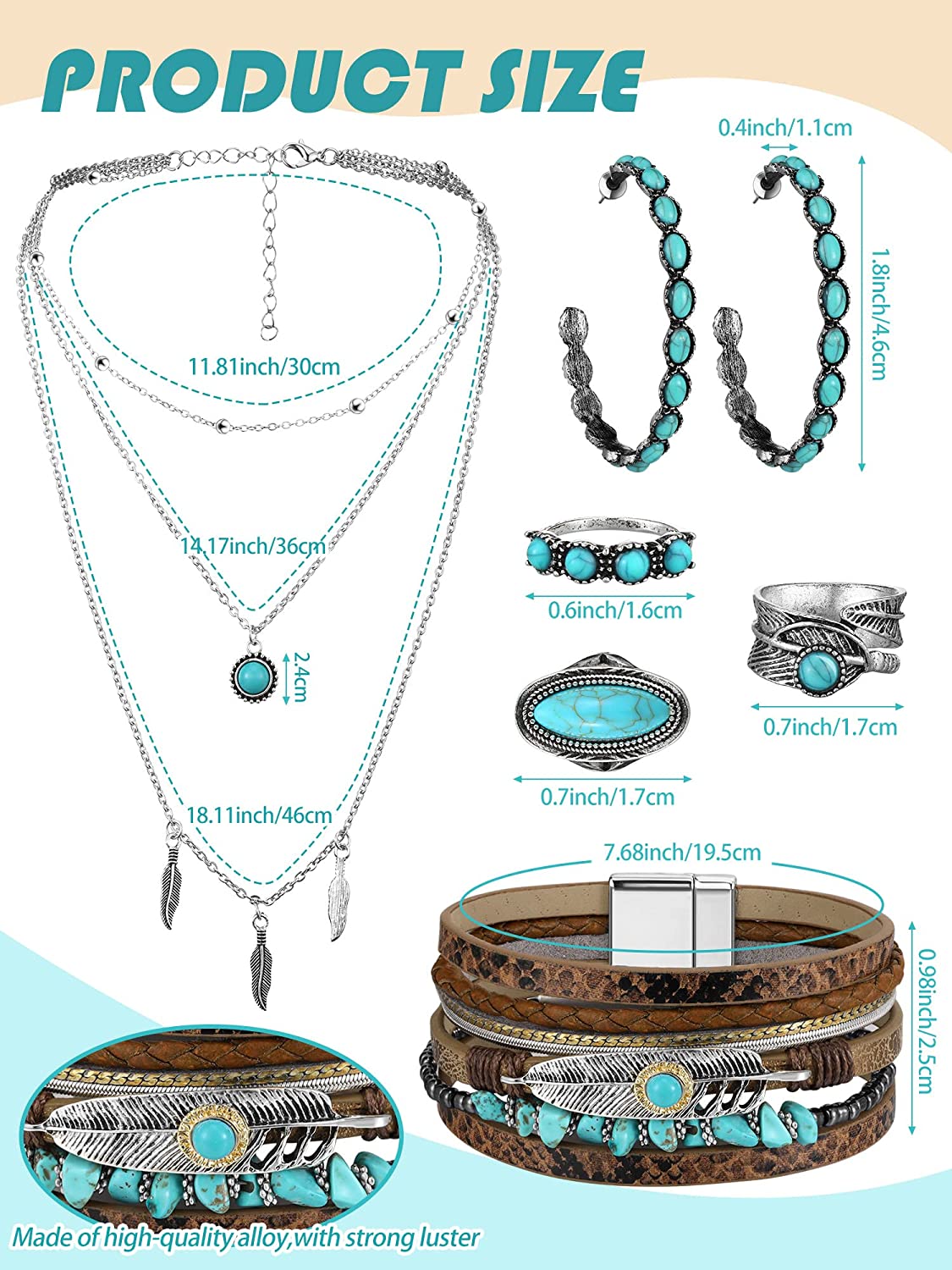 • Trusted Material: our western jewelry for women is made of quality alloy, turquoise and faux leather, friendly to your skin, solid and lightweight, sturdy and not easy to break, deform or fade, can be applied for a long time, will not bring much burden to you