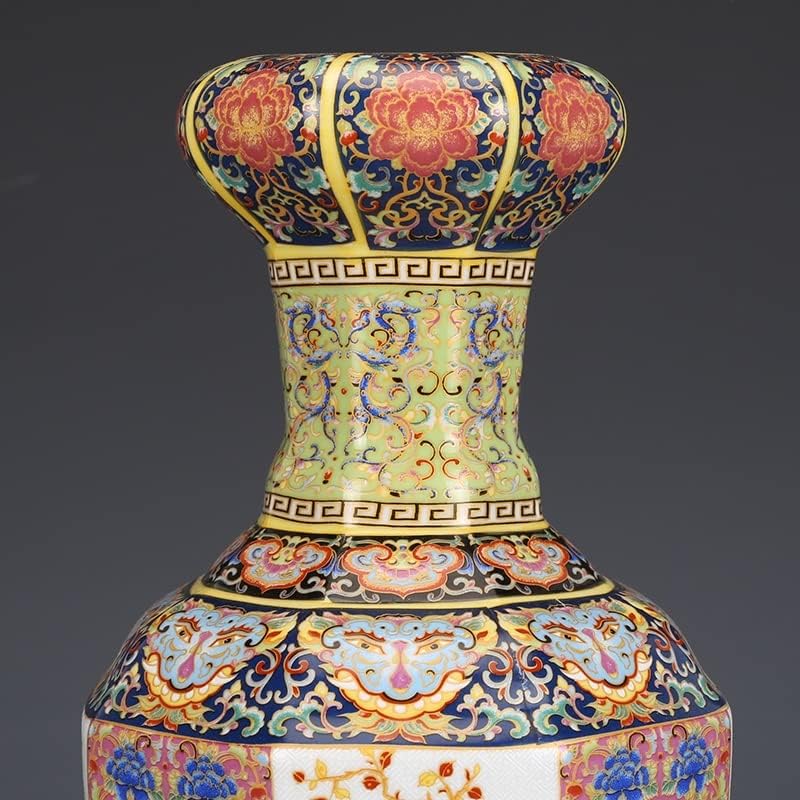 ZHYH Jingdezhen Antique Enamel Square Vases Flowers and Birds Pattern Ancient Porcelain