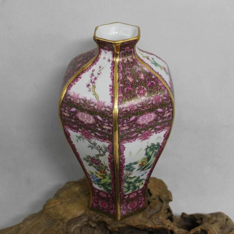 ZHYH Jingdezhen Antique Enamel Square Vases Flowers and Birds Pattern Ancient Porcelain