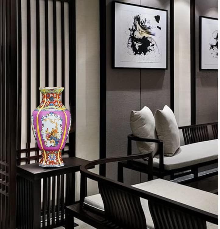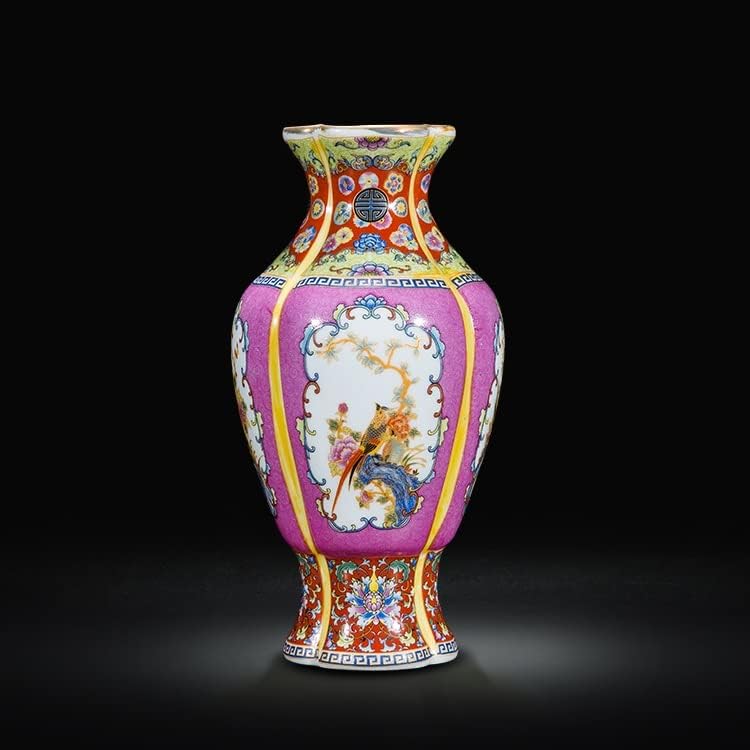ZHYH Jingdezhen Antique Enamel Square Vases Flowers and Birds Pattern Ancient Porcelain