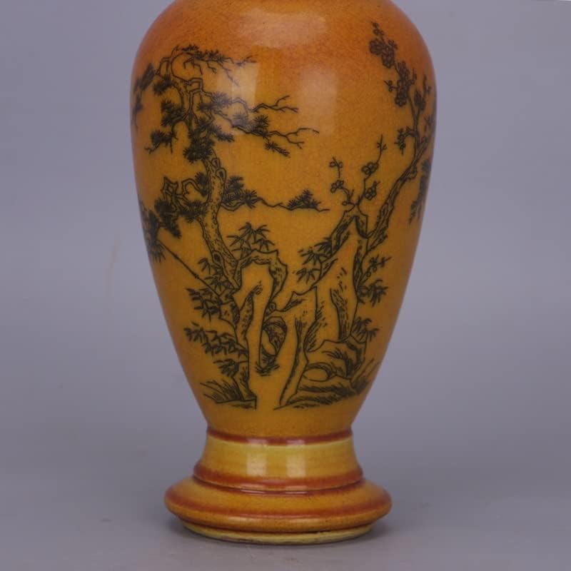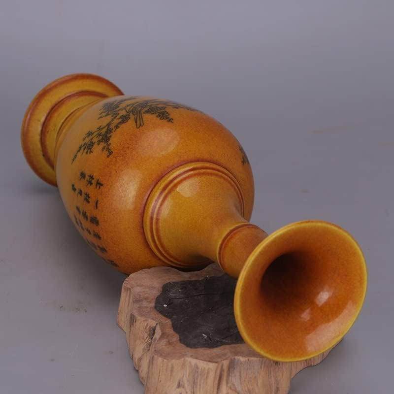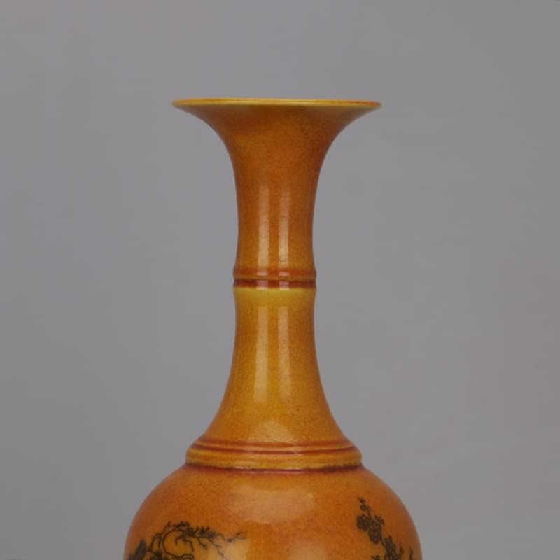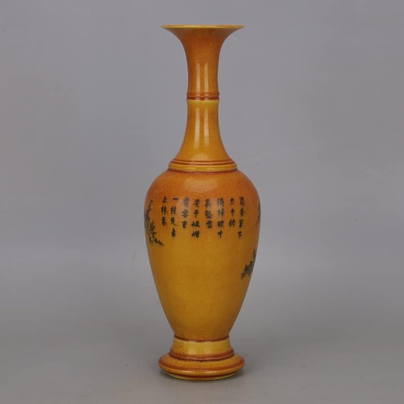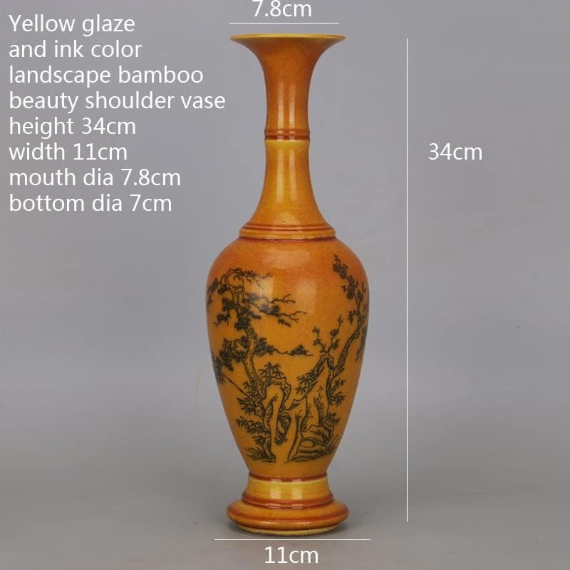 ZSEDP Yellow Glaze Ink Color Landscape Beauty Shoulder Vase Antique Porcelain Decoration