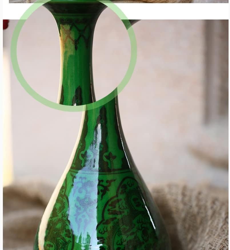 ZSEDP Antique Green Glaze Ceramic Vase Flower Vase Handmade Furnishing Articles Sitting Room Bedroom Decoration