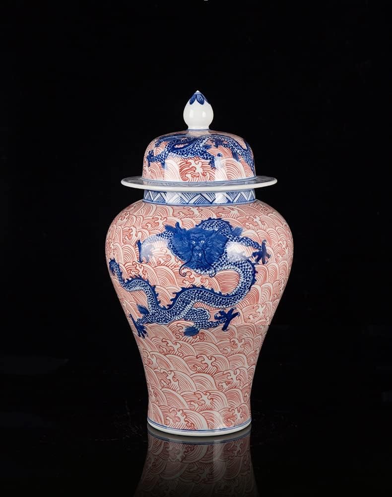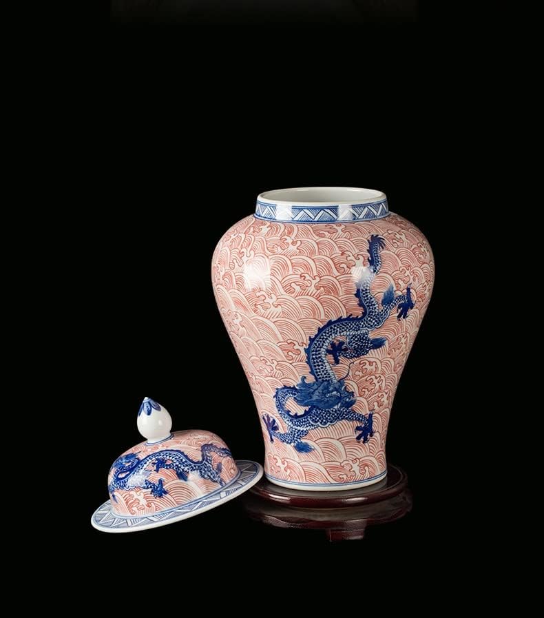 ZSEDP Porcelain Antique Dragon Pattern Blue and White General Tank Canned Ornaments Ornaments Home Tabletop Porcelain Craft