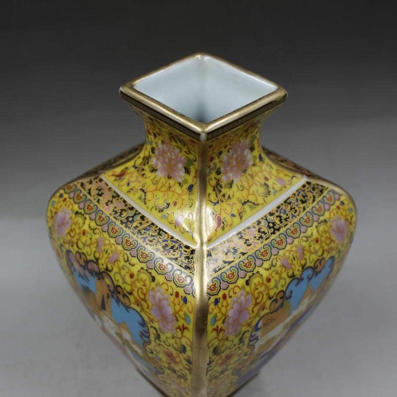 ZHYH Jingdezhen Antique Enamel Square Vases Flowers and Birds Pattern Ancient Porcelain