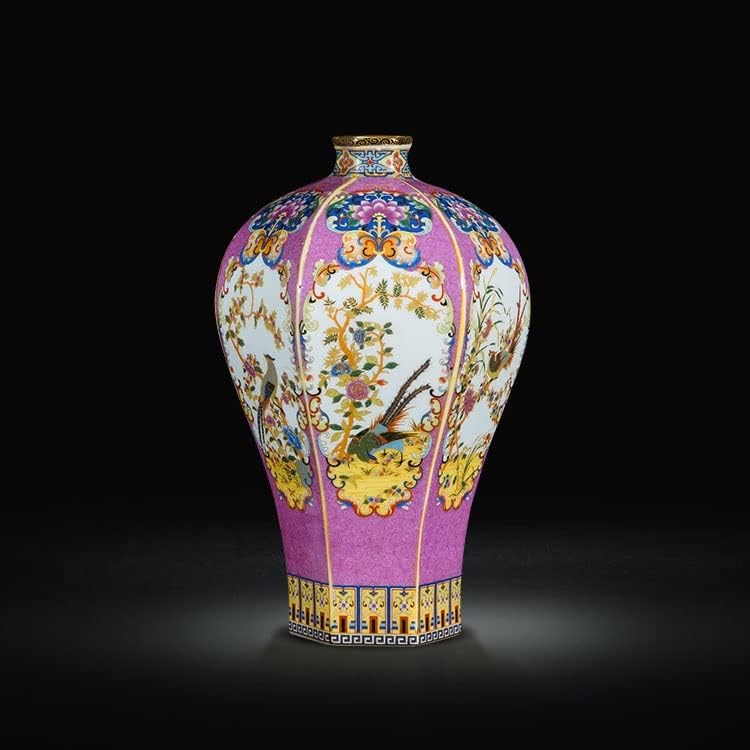 ZHYH Jingdezhen Antique Enamel Square Vases Flowers and Birds Pattern Ancient Porcelain