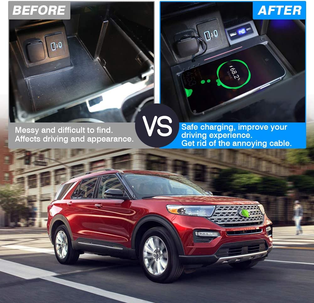 Custom Fit —— The wireless phone charger pad perfectly fit for 2020-2022 Ford Explorer, for any owners of Smart Phones with Wireless Charging Function. 3D data from the original car,won’t affect your car other function,No-Drilling,No need to plug the cable,plug the charger directly into the cigarette lighter to use it,plug and charge.