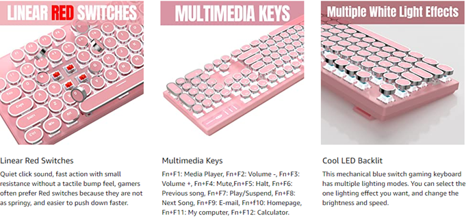 - ❤[ PC Gaming Keyboard Compatibilty ] This retro cute typewriter mechanical gaming keyboard adapt to Win98 / 2000/ 7 / 8 / 10 / XP / Vista / ME . Plug and play. No drivers or softwares are required.