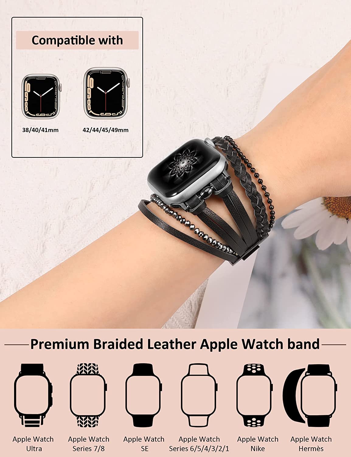 Adapted to your watch: Our leather watch bands are compatible with Apple Watch band Apple Watch Ultra (49mm), Series 8/7(41/45mm), Series SE/6/5/4(40/44mm) and Series 3/2/1 (38/42mm). Just choose the size you need.