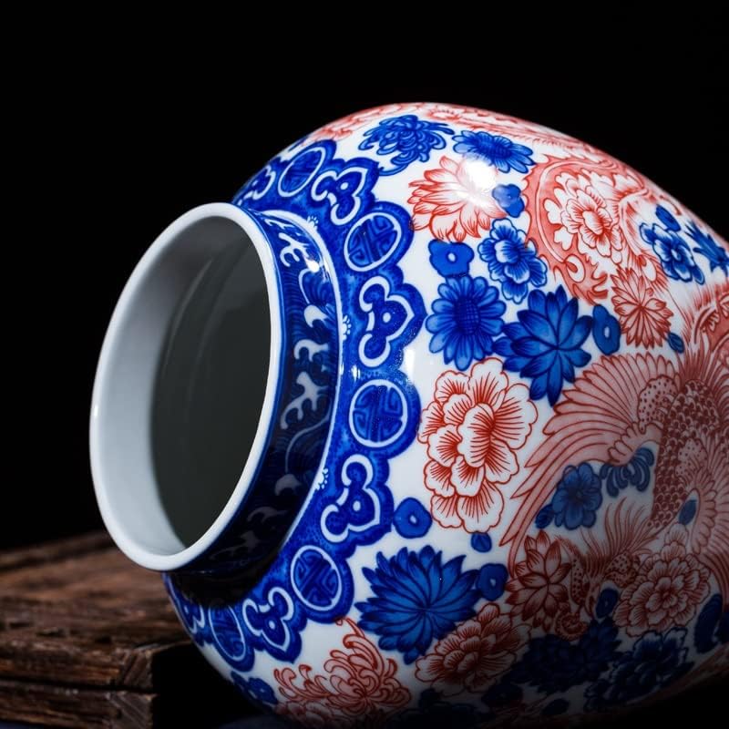 RENSLAT Jingdezhen Porcelain Antique Jar Blue and White Glaze Red General Tank Glaze