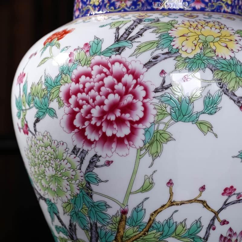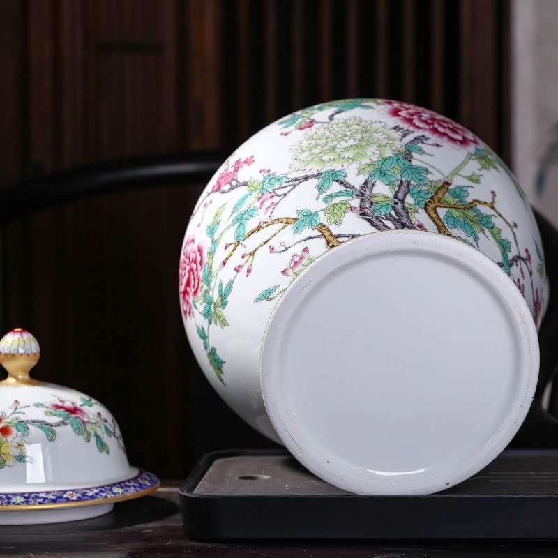 RENSLAT Jingdezhen Ceramic Antique Peony Pastel Tank Storage Tank with Cover Domestic Chinese Living Room Decoration