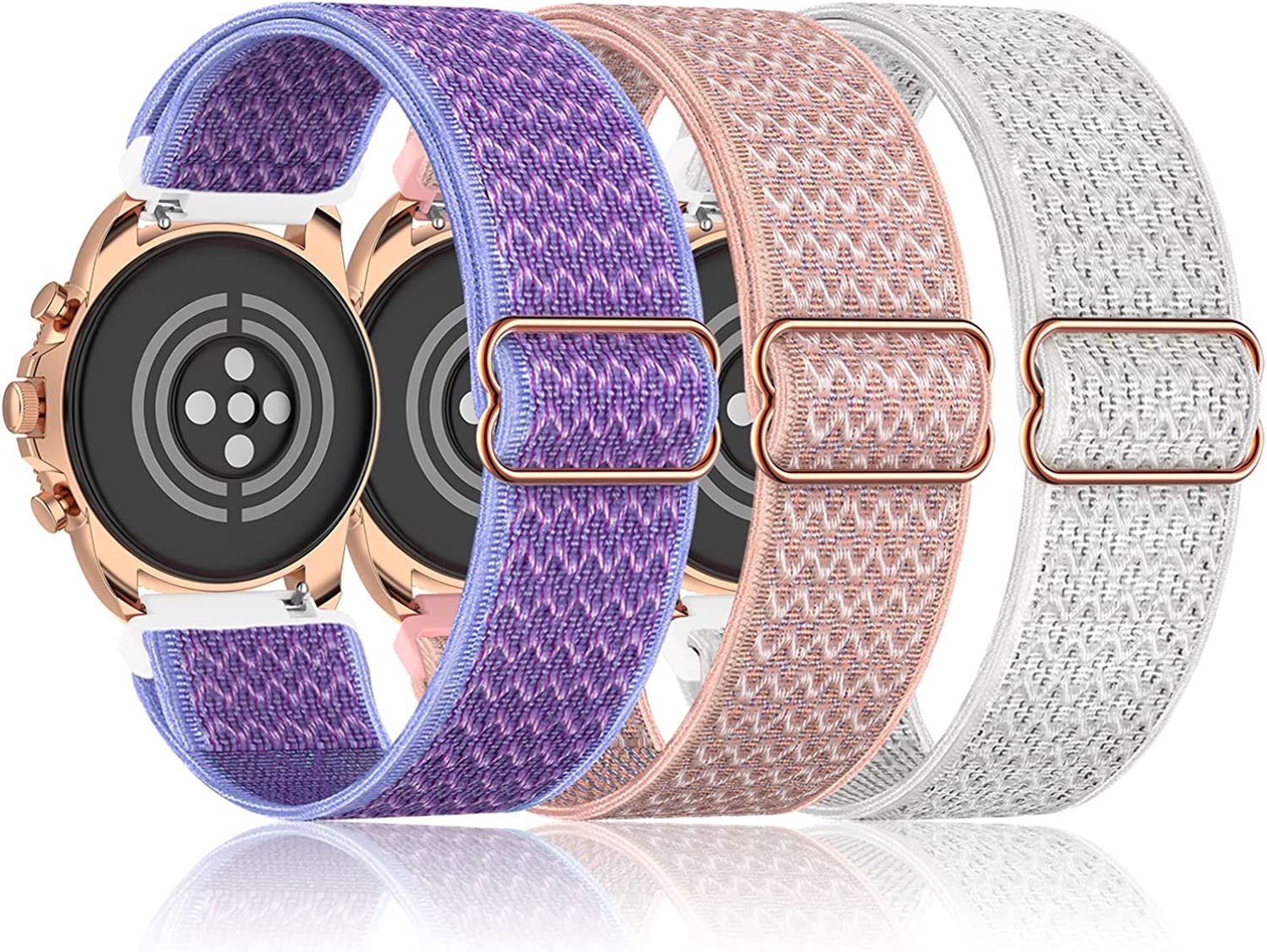 Farluya 3 Pack 18mm Stretchy Nylon Watch Bands for Fossil Women's Gen 5E 42mm / Gen 6 42mm,Soft Quick Release Wristband Loop Elastic Strap for Fossil Venture Gen 4 HR/Gen 3 Women Men