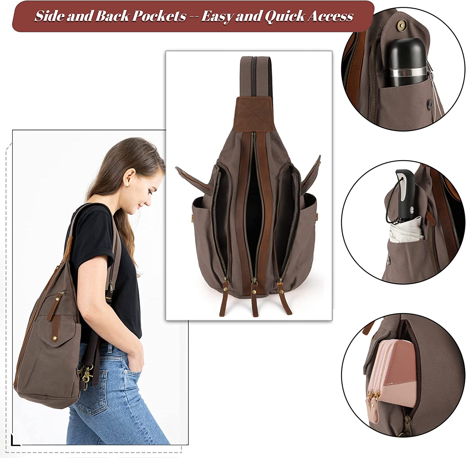 - This sling bag features a convertible and adjustable zipper strap, which can be used as a backpack, chest bag or crossbody bag, which is versatile and easy to change.