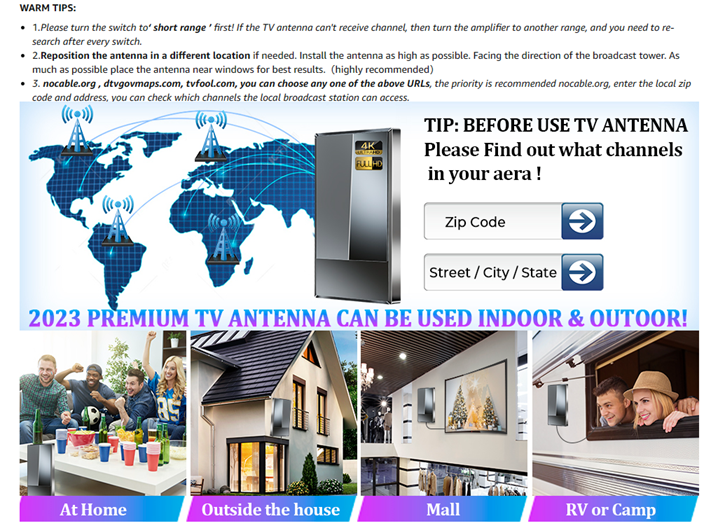 • ?▷【UPGRADED TO 800+ MILE LONG RANGE】- TV antenna for smart tv, equip with 2023 MOST POWERFUL built-in ic chip & HIGH-QUALITY signal amplifier, ensure the stability of signal reception,access to more free channels . Indoor/Outdoor tv antenna has high gain, bring clear pictures, low noise and access to most TV signals.Transfer 8k 4k combination of UHR and HDR video content. You deserved the 2023 Best & Oversized ANTENNA which offers more longer ranges on the market and lndustry-leading Power!