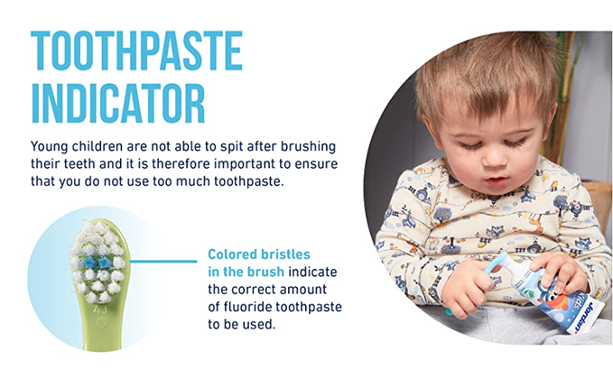 - RECOMMENDED BY DENTISTS - Dentists recommend that you start using baby tooth brush when the very first tooth appears. The ergonomic shaped handle good grip makes it comfortable for both baby and parents. Colored bristles indicate amount of fluoride toothpaste to be used