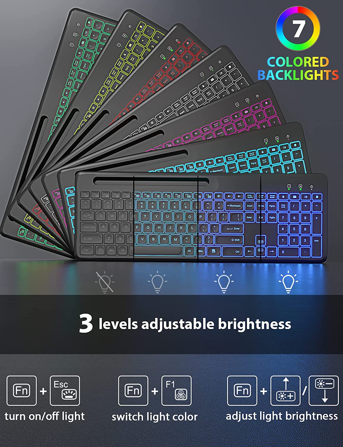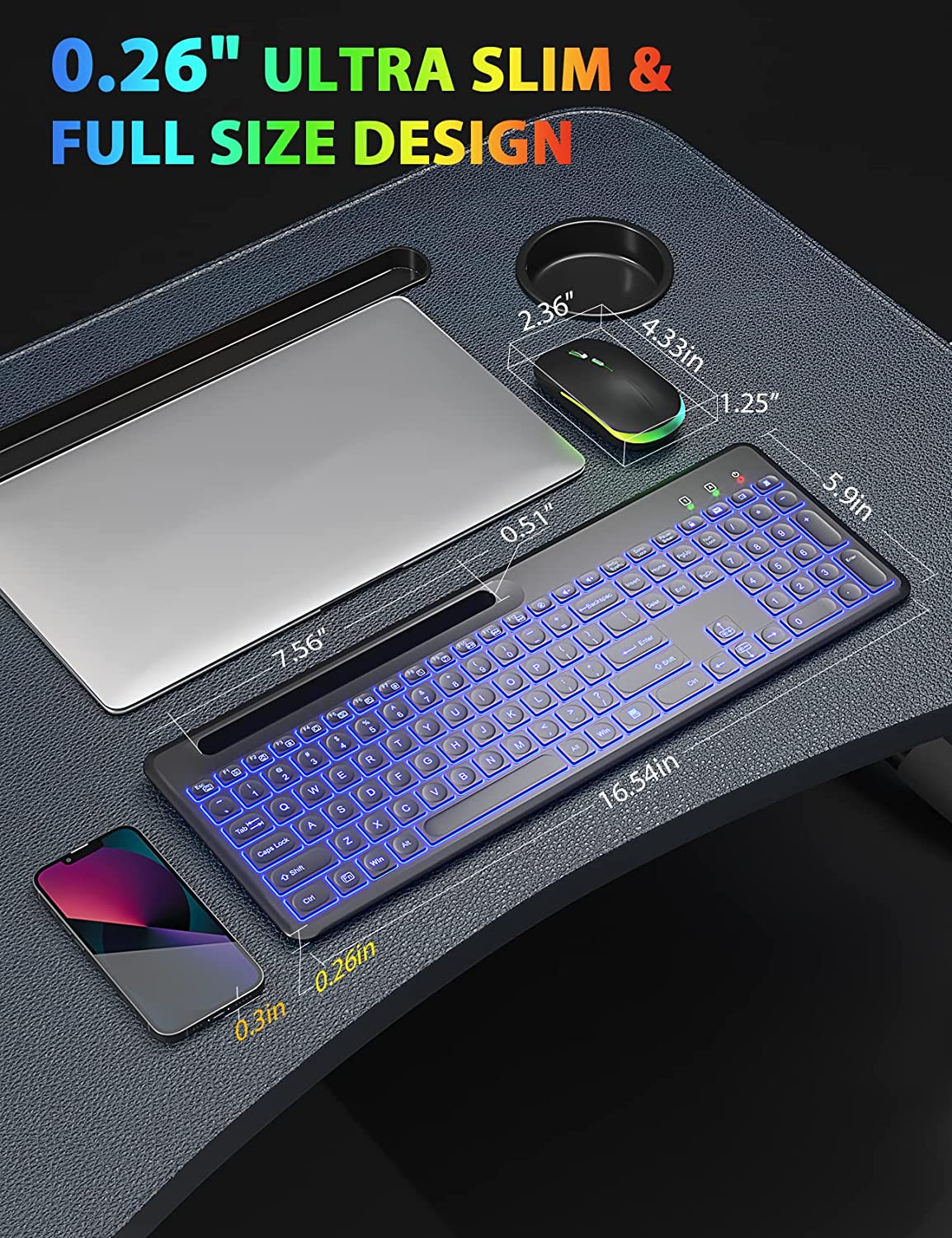 A1:The wireless keyboard has 7 switchable backlit modes and the cordless mouse has 7 random colors for the backlights.