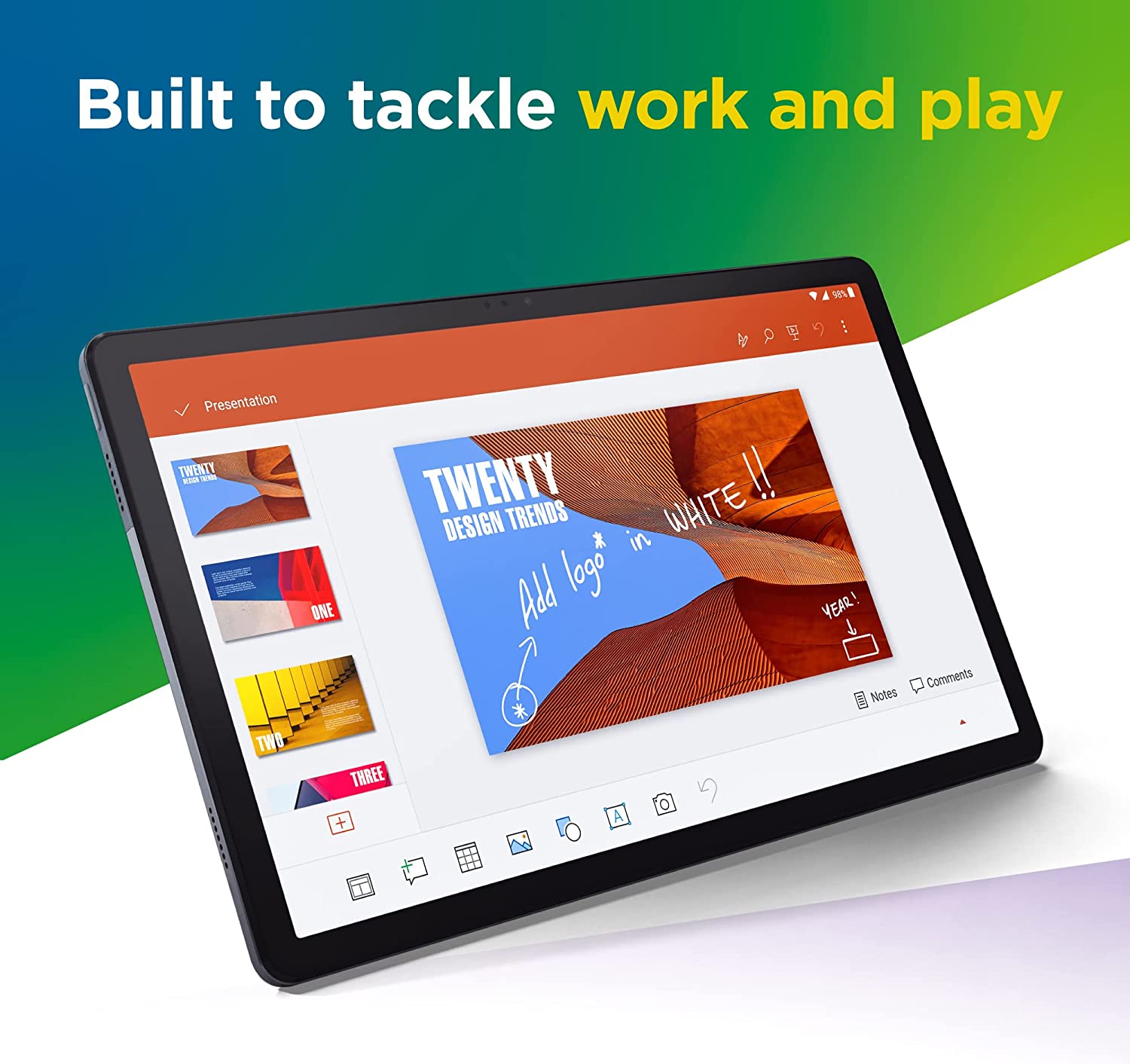 Experience first-class multimedia and fun with the Lenovo Tab P11 Plus. This Android tablet features a large, 11-inch screen with 2K resolution. You'll enjoy beautiful video in the IPS LCD touch display and great audio through quad speakers with user-facing stereo tuned by Dolby Atmos®. Inside, you'll find a powerful octa-core chip, 4GB + 128GB memory. Plus, this slim and lightweight tablet delivers epic battery life in an aluminum-alloy design with a dual-tone finish available in an elegant slate grey color.Running the Android™ 11 operating system, the Tab P11 Plus tablet offers Bluetooth® and Wi-Fi wireless connectivity and a USB Type-C™ 2.0 port for data transfer and charging. You can also use the USB-C port to attach a compatible headset. Use the front or rear camera to take photos or enjoy a family video chat – this Android tablet comes with a dual microphone array and quad speakers so you'll experience crisp, clear video and sound. You can even log in quickly and easily with Face Unlock.