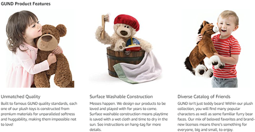 • PREMIER PLUSH: As one of America’s oldest soft toy makers, GUND was among the first companies to produce a teddy bear. For 125 years, GUND has been creating unique teddy bears and stuffed animals recognized worldwide for their quality and innovation.