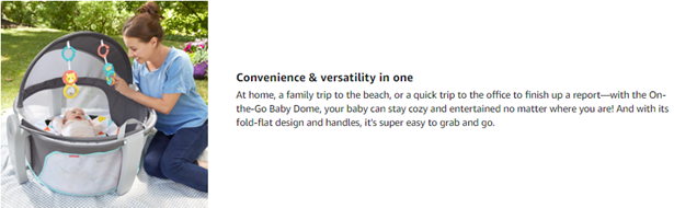 Your baby will feel right at home in the Fisher-Price On-the-Go Baby Dome. It features a comfy pad for your baby to nap or play on and a canopy that protects against pesky bugs and the sun's bright rays. Two colorful toys dangle overhead, which can be removed and placed within your baby's reach for play time. And when you're heading out with your favorite copilot, simply fold the dome and you're ready for the next adventure! Use only with a child who is unable to push up on hands and knees, pull up or sit unassisted.