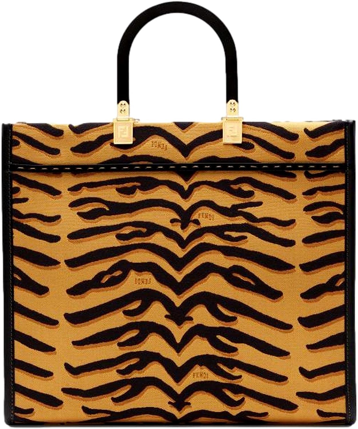 This Fendi Sunshine Shopper Bag combines classic lines with a bold tiger print in the canvas shopper tote. The designer was inspired by the Chinese Year of the Tiger celebrations and the bold black and yellow colors make the print pop.