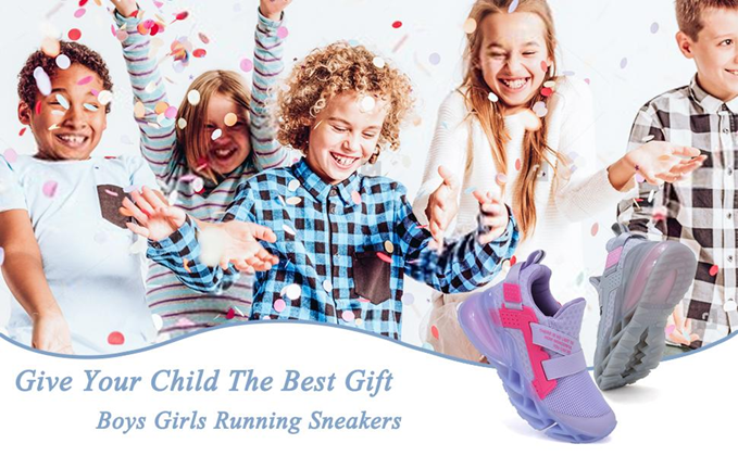 Boys Girls running shoes with high quality knit mesh upper for lightweight and breathable, provide more comfortable wearing experience