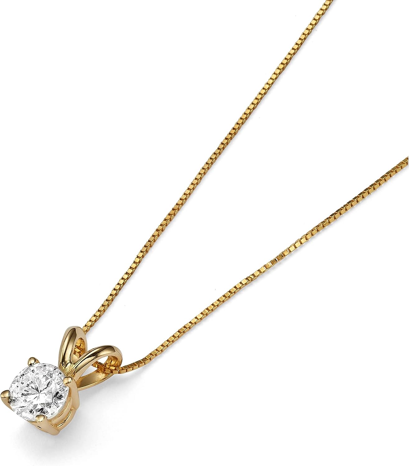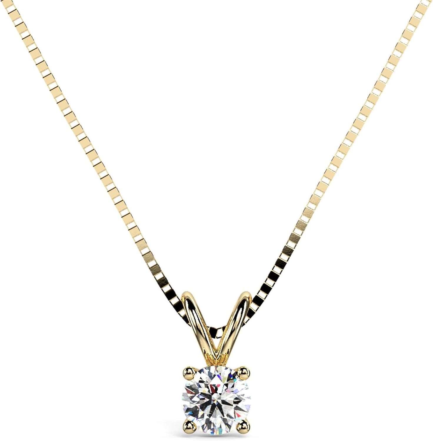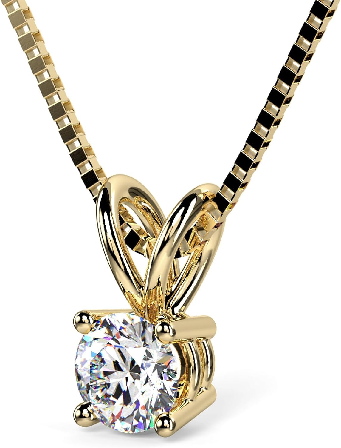 14k Yellow Gold Pendant Necklace, 4 Prong Setting, Round Brilliant Shape (0.50 TCW, SI2 Clarity, F Color, 5.00mm x 9.00mm) Spring-ring Box, Natural Diamond, Not-treated, Gift For Loved Ones, Jewelry f