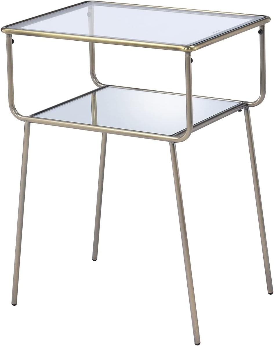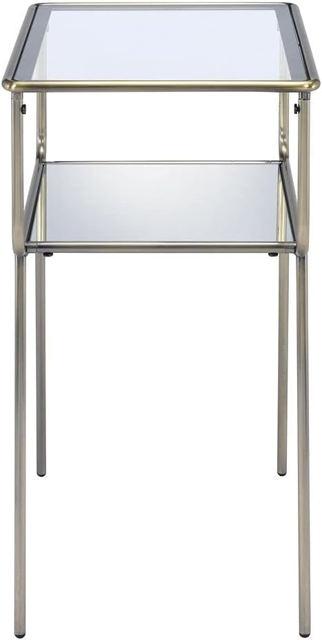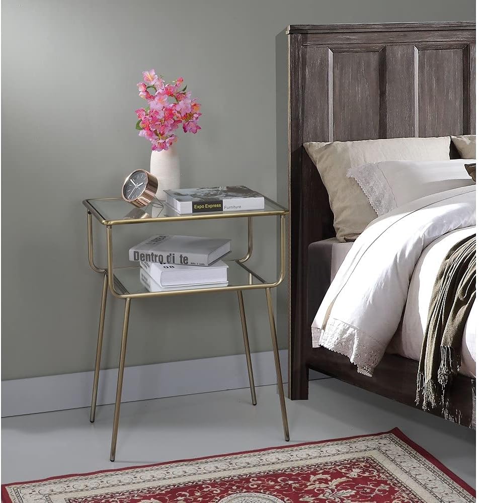 ZLBYB End Table in Antique Gold & Clear Glass Night Table Bedside Table Nightstand