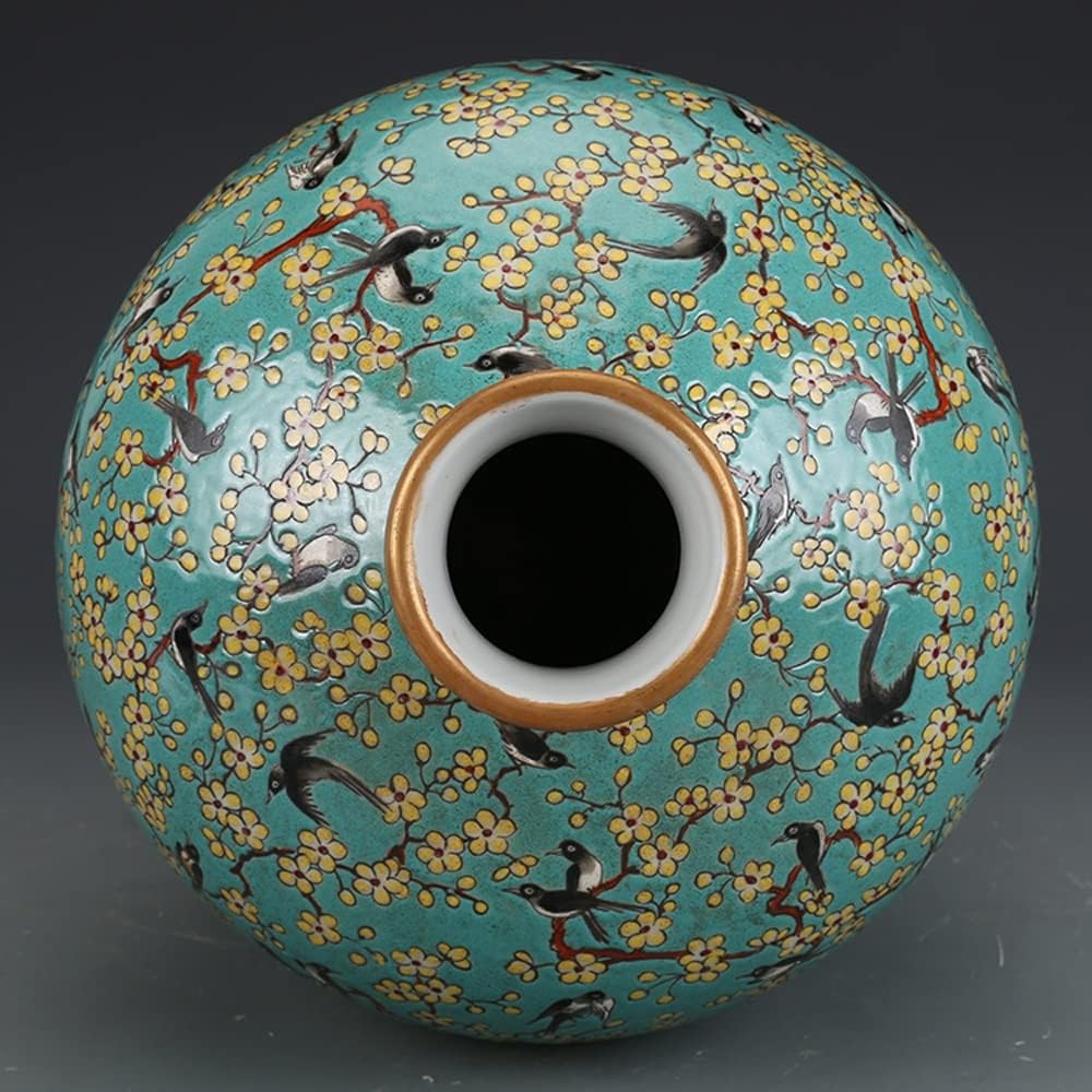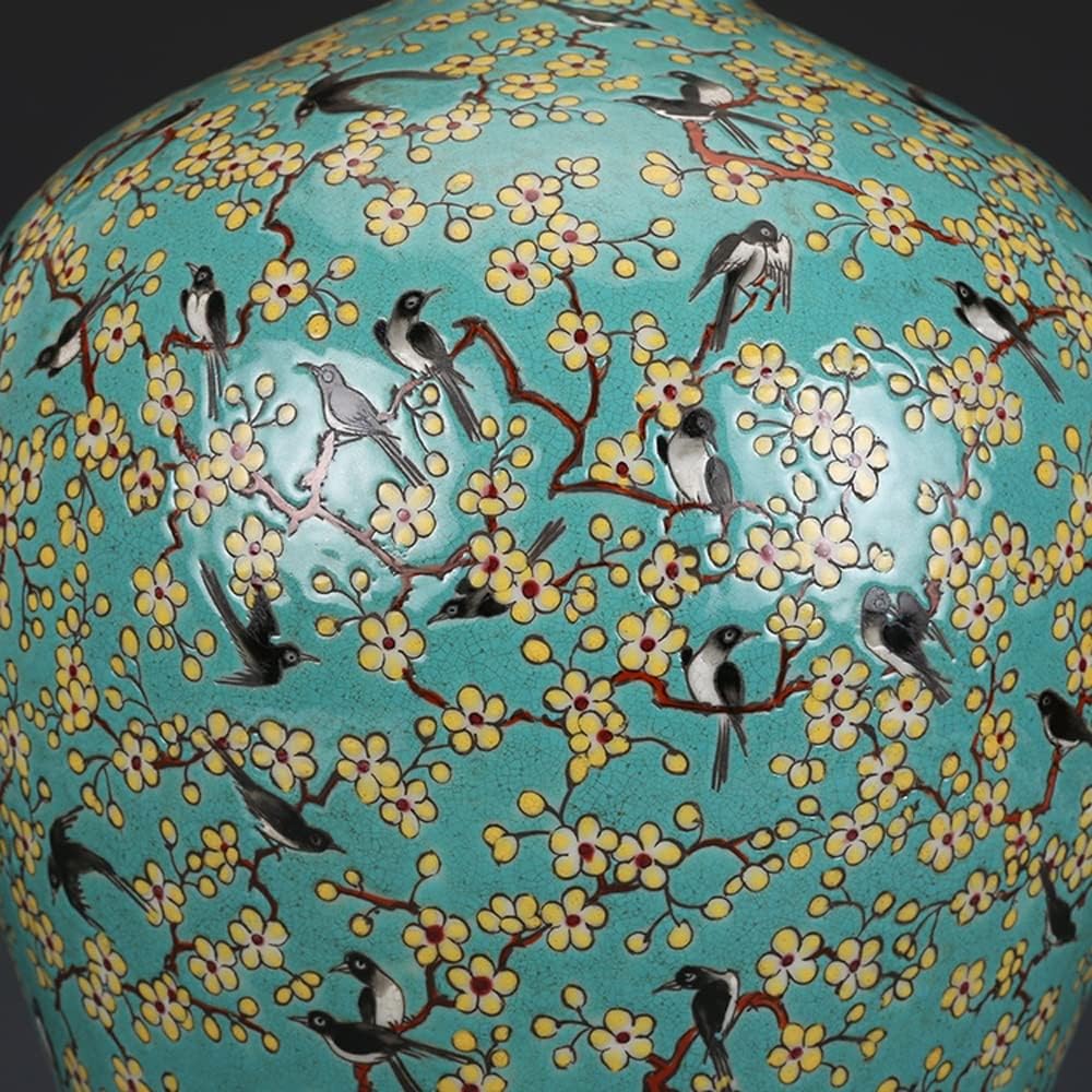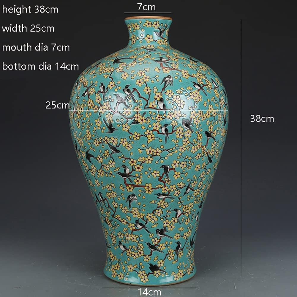 DSHGDJF Hand-Painted Green Rose Magpie Plum Vase Antique Porcelain Vase Jingdezhen Porcelain Living Room Bedroom Office Vase Ornaments