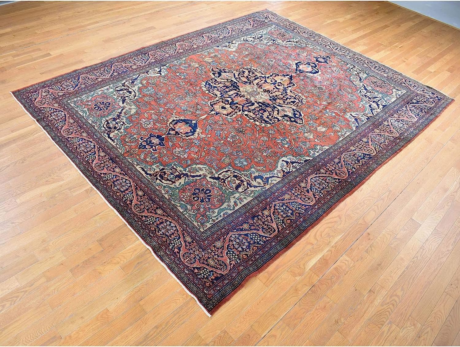 Shahbanu Rugs Barn Red, Antique Persian Feraghan Sarouk, Soft Wool Hand Knotted Rug (9'0" x 12'0")