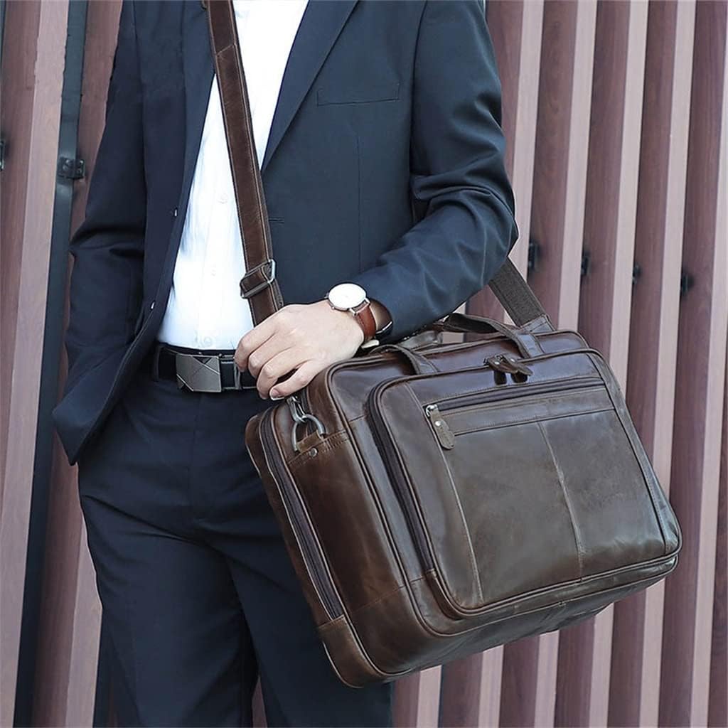 Men's Leather Briefcase Crazy Horse Leather 17" Laptop Business Tote Men's Tote Large Shoulder Bag.