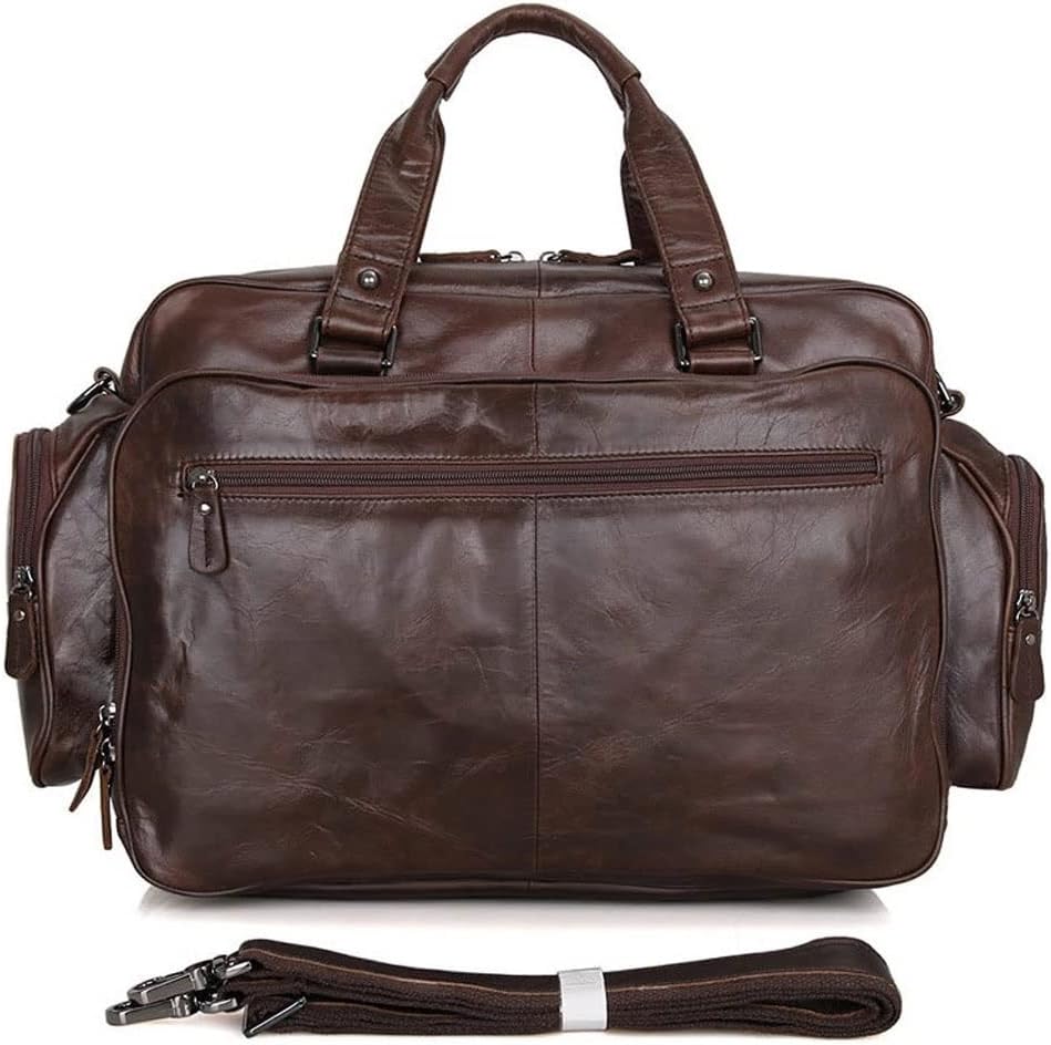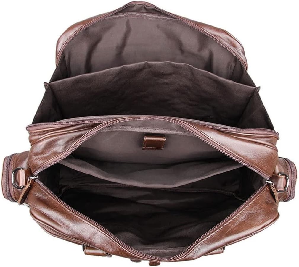 DLOETT Functional Travel Bag Men Leather Tote Bag Business Casual Laptop Shoulder Bag Tote Briefcase